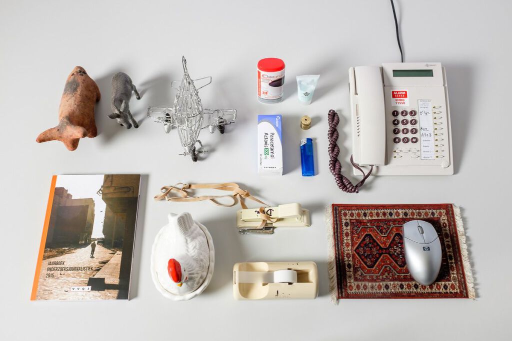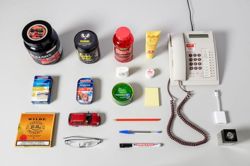 En daarnaast heel veel persoonlijke dingen, zoals beeldjes en poppetjes, deodorant en tubes handcrème, blikjes vis, visoliepillen en sigaren.